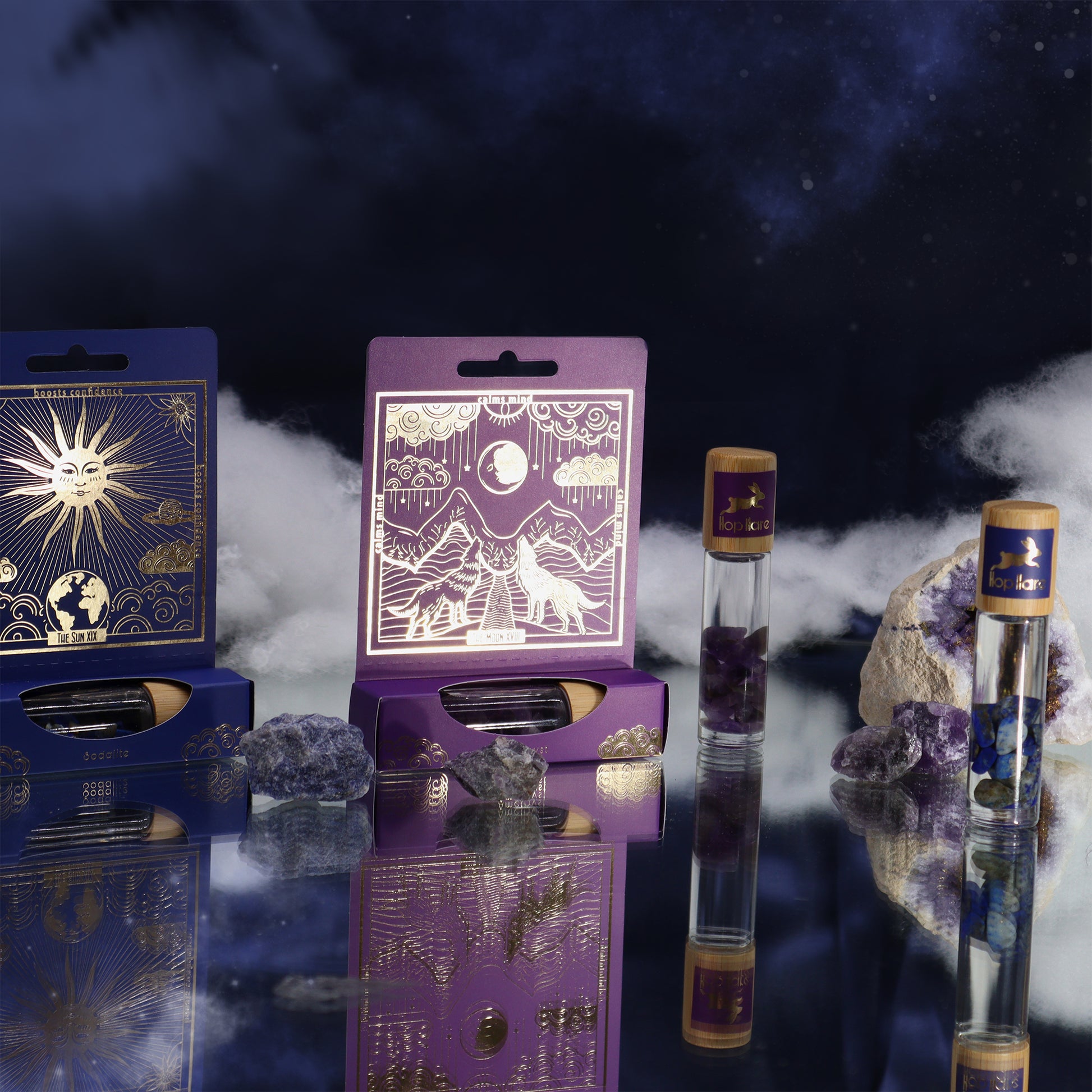 "The Moon" - encapsulates a blend of soothing aromas crafted to pacify the mind, complemented by the serene energy of Amethyst gemstones.